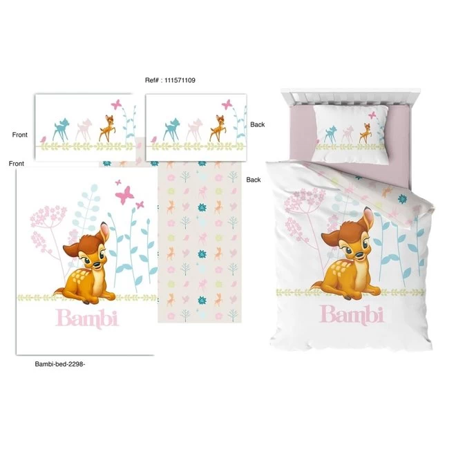 Deze katoenen Disney Bambi baby dekbedovertrek is dubbelzijdig bedrukt, wat een leuk effect geeft bij het opmaken van het ledikantje.Â