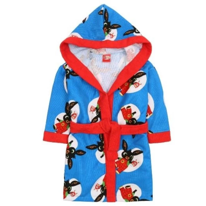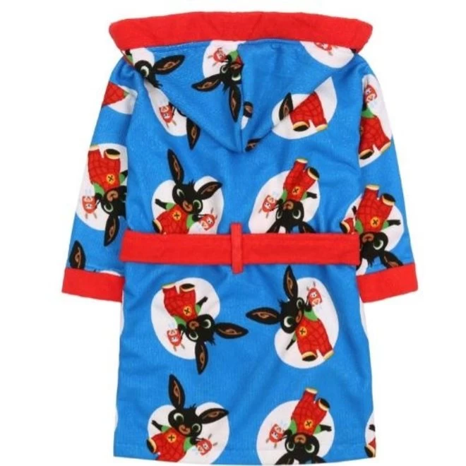 Heerlijke zachte Bing Konijn badjas met capuchon. Deze fleece ochtendjas heeft een all over print van Bing het Konijn. De Bing Konijn kinderbadjas draagt licht en comfortabel en is ideaal voor een luie zondag, na de zwemles of op de camping.