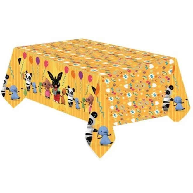 Vrolijk Papieren Bing Konijn tafelkleed om de de tafel super feestelijk te decoreren.
