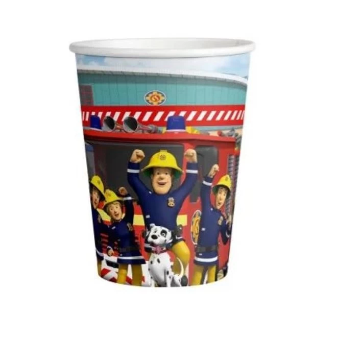 8 Kartonnen Brandweerman Sam bekers met een inhoud van 250 ml.