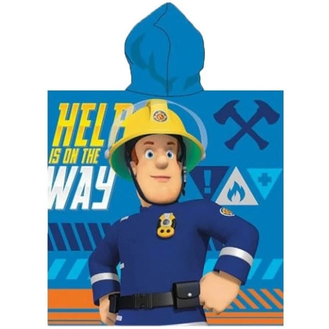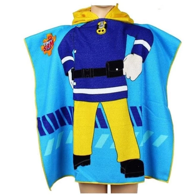 Heerlijke Brandweerman Sam badponcho. Ideaal na het badderen of als je uit de zee of het zwembad komt. Hup, je hoofd door de opening en je wordt in een mum droog en bent tevens beschermd tegen felle zon.