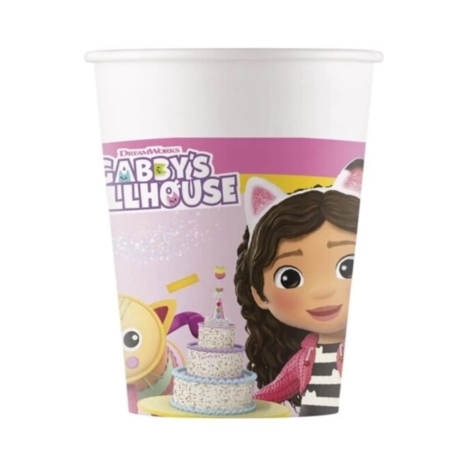 8 kartonnen Gabby’s Dollhouse bekers voor het allerleukste Gabby kinderfeestje.