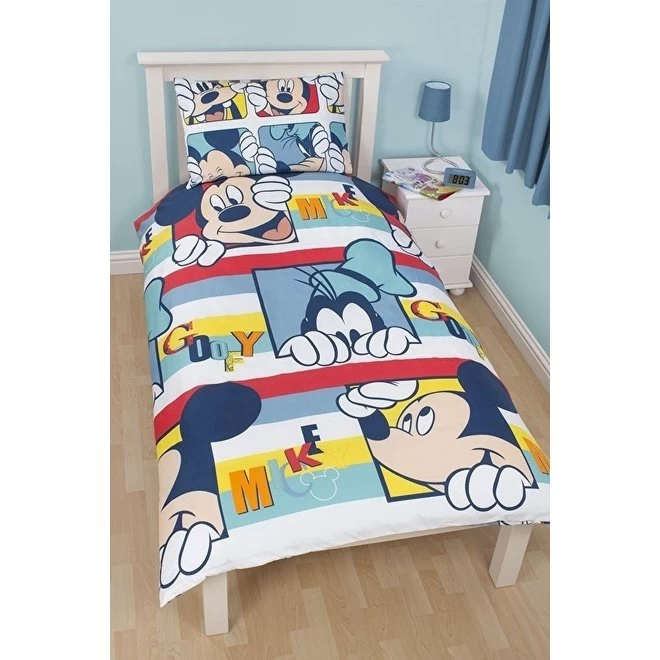 Mickey Mouse Cartoon dekbedovertrek met bijpassende kussensloop.