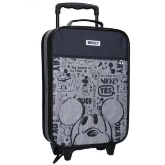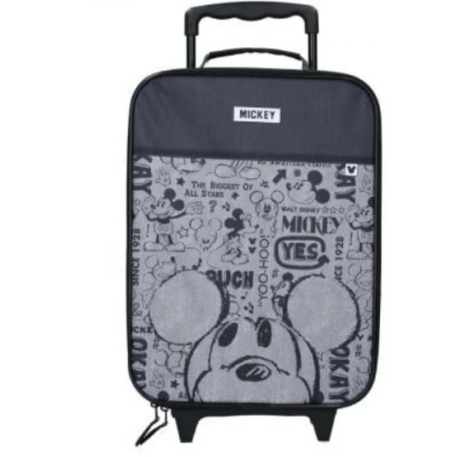 Deze grijs/zwarte Mickey Mouse trolley koffer is ideaal voor een korte vakantie, dagje uit of logeerpartijtje. Met gemak berg je alle spulletjes op in het ruime hoofdvak welke sluit dmv een rits. De Disney koffer heeft een handige draaglus. Wordt de bagage toch iets te zwaar dan trek je de telescopische stuurstang uit en rol je de trolley verder.Â
