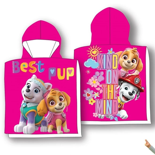 Heerlijke Paw Patrol meisjes badponcho. Ideaal na het badderen of als je uit de zee of het zwembad komt. Hup, je hoofd door de opening en je wordt in een mum droog en bent tevens beschermd tegen felle zon.