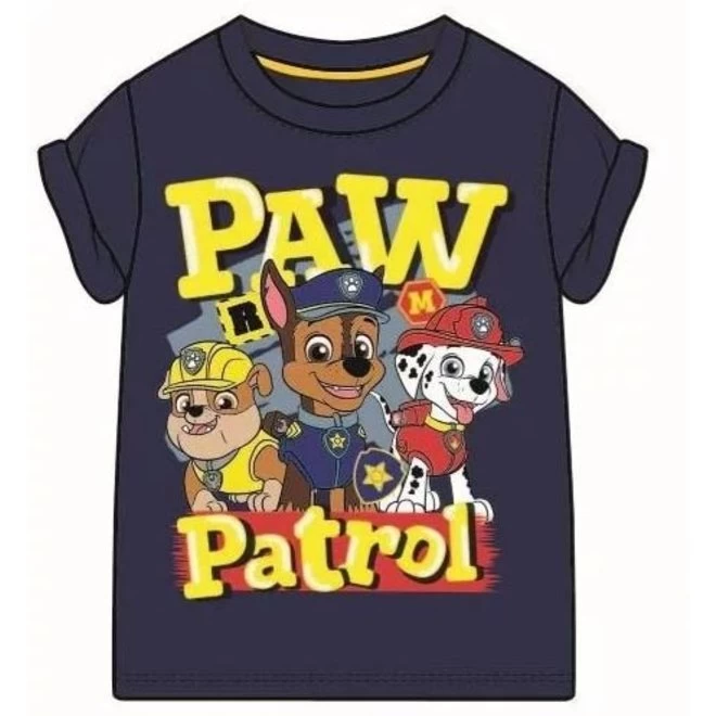 Paw Patrol t-shirtΒ met een print van je favoriete pups;Β Rubble, Marshall en Chase.