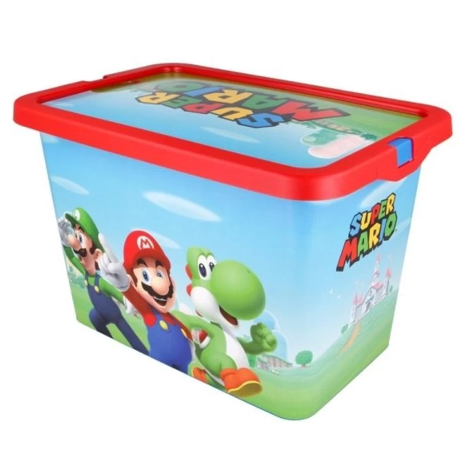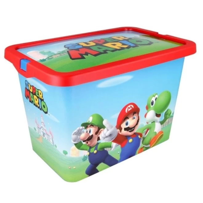 Deze kunststof Super Mario Bros opbergbox is een echte blikvanger in de kinderkamer. Het stimuleert kinderen om hun kamer na het spelen op te ruimen. De opbergbak heeft een inhoud van 7 liter en een klik-systeem om handig te sluiten.